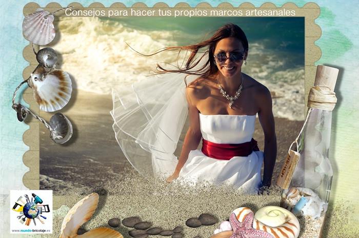 Una fotografía sin marco, un grabado o un espejo de poco peso puedes prepararlo con una lámina de madera de escaso grosor. Tendrás que centrar la imagen o el espejo, y las dimensiones que dejes por todos los lados serán las medidas de tu marco. Ha llegado el momento de elegir con qué quieres cubrir tu obra o si quieres forrarla. Pegar determinados objetos sobre la superficie de madera pulida no te resultará difícil: conchas, pequeñas piedras o cristales planos que podemos colorear con pintura acrílica. También es una gran idea partir por la mitad pinzas de madera, colorear las partes con acuarelas y pegarlas a tu lámina, esparciendo purpurina sobre ellas antes de que se sequen. El papel de las revistas también puede echarte una mano para el acabado; recorta muchas tiras de revistas, haz rollos con ellas y cuando tengas suficientes aplícalas cola para que no se desarmen y las pegas a la madera en una misma dirección.